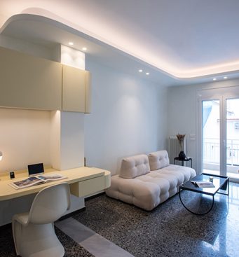 BESSA+S has completed the renovation of a 50 sq.m. apartment in a 1970s building in the center of Athens. The fragmented floor plan of the Athenian apartment is dismantled and redesigned with the openness and brightness of the spaces in mind. The old interior walls are cleared and the bedroom walls are the only ones preserved.