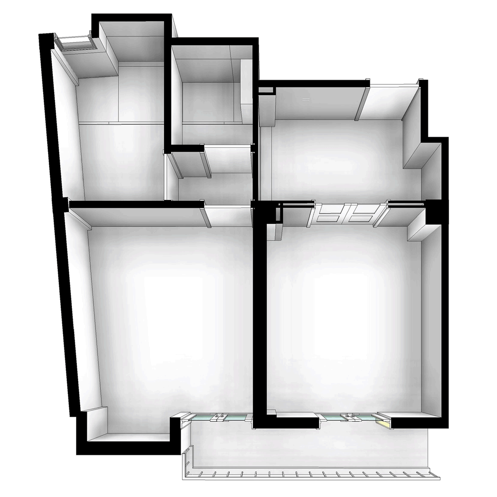 Indirect Natural Lighting- Rows of glass bricks on the parallel walls take advantage of natural light, allowing it to penetrate through multiple rooms.