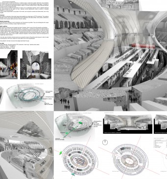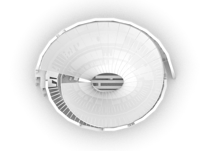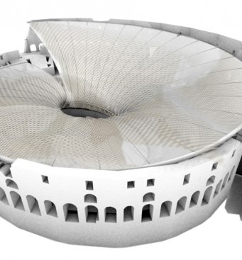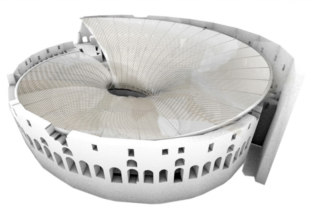 The new sculptural element also acts as a translucent roof to the monument allowing for the supporting program and services, such as café, restaurants etc, to be distributed freely around existing spaces and ruins between the Colosseo floor plans.